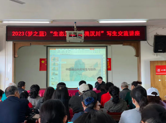 4月9日上午,由汉川市文学和艺术界联合会、汉川市文化和旅游局主办,汉川市美术家协会、汉川市文化馆承办的“2023梦之蓝——生态汉江 唯美汉川”专家讲座及写生交流活动在汉川市委党校多功能教室和汉川公园举行。